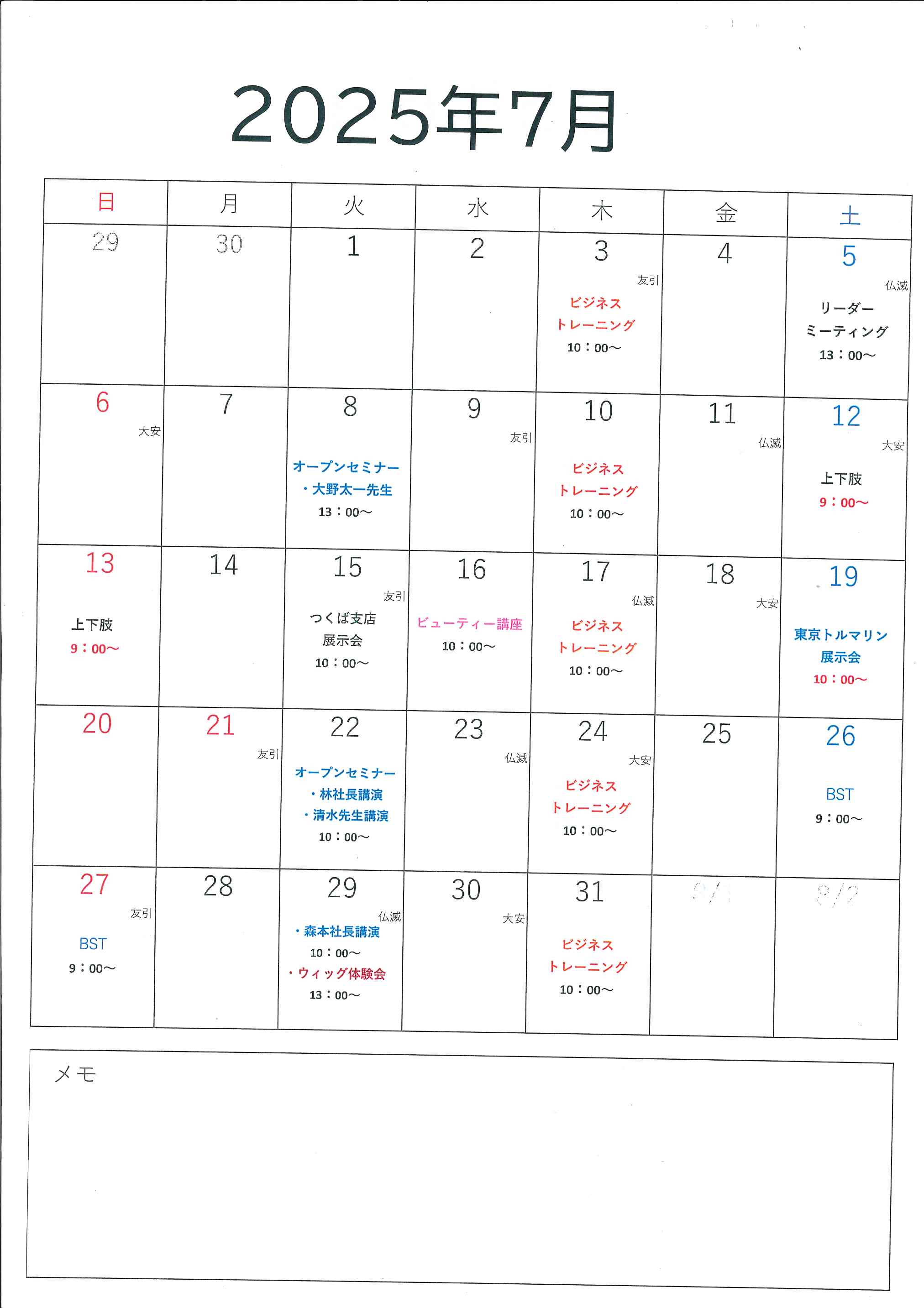 7月スケジュール